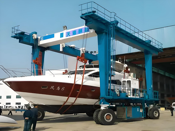 3、環(huán)境適應(yīng)與全天候作業(yè):輪胎設(shè)計(jì)適應(yīng)沙地、混凝土等多種地面條件,具備防風(fēng)、防腐蝕能力,可在風(fēng)雨天氣穩(wěn)定作業(yè)。這一特性解決了傳統(tǒng)吊機(jī)在惡劣環(huán)境下的停工問題,提升游艇塢的年作業(yè)天數(shù)。